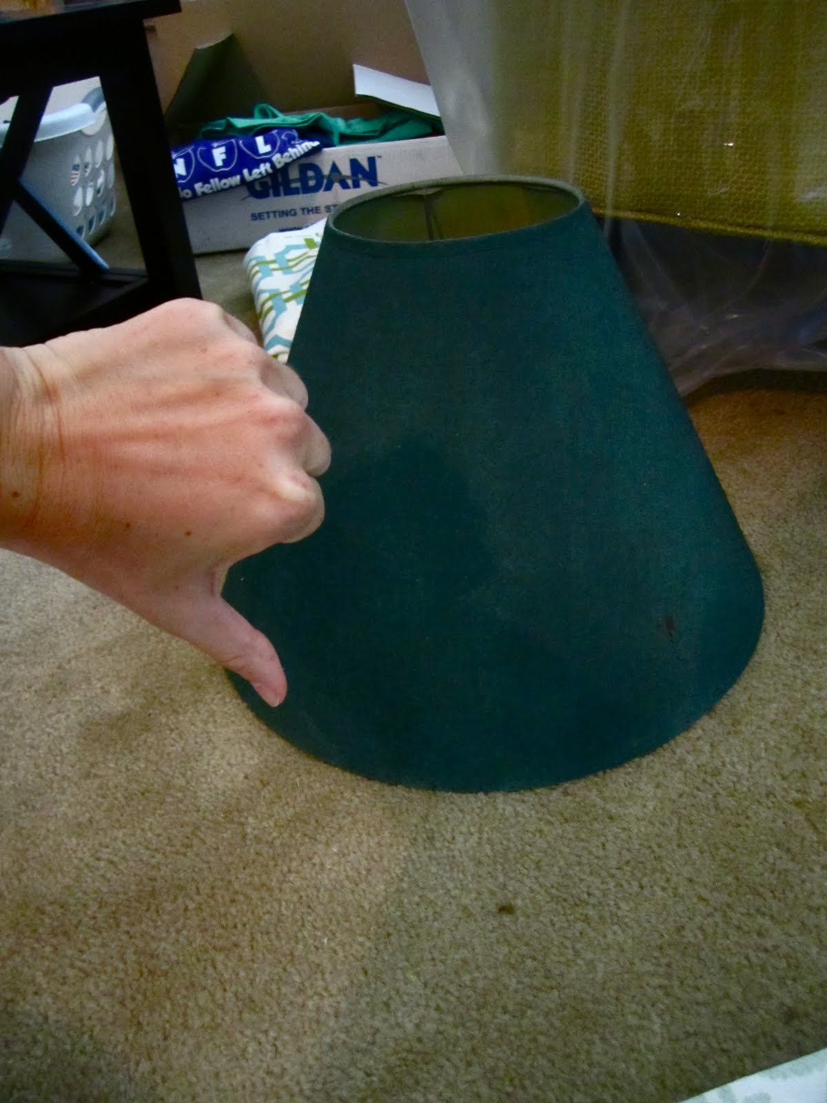I ditched the orignal lampshade that came with my lamp. Instead, I used a "drum" lampshade that was hanging out on another lamp. I viciously ripped the drum lampshade from its home and started covering it with fabric.